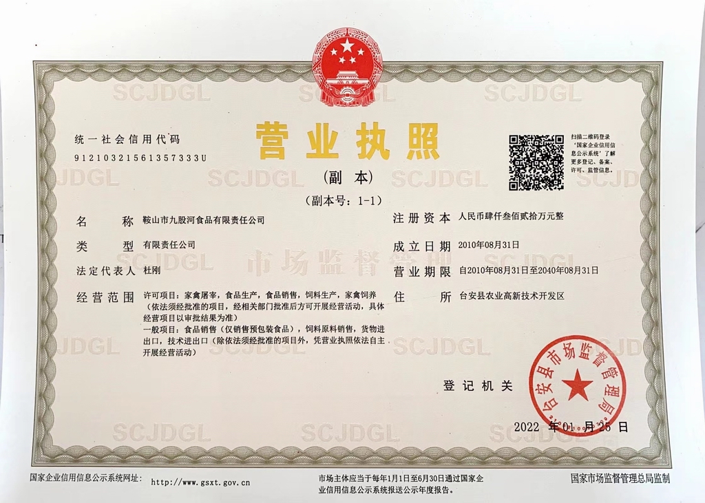 1997年丨九股河誕生于遼寧臺(tái)安,成立臺(tái)安縣九股河農(nóng)業(yè)發(fā)展有限公司2003年丨九股河走進(jìn)錦州市,在凌海成立凌海九股河食品有限公司2008年丨成立凌海九股河飼料有限公司2010年丨九股河與禾豐合作后,成立鞍山市九股河食品有限責(zé)任公司,從此,禾豐九股河走進(jìn)了高速發(fā)展之路2011年丨繼續(xù)在遼西闊步,成立葫蘆島九股河食品有限公司同年,臺(tái)安縣九股河農(nóng)業(yè)發(fā)展有限公司養(yǎng)殖部成立,按下規(guī)模化籠養(yǎng)小區(qū)建設(shè)的快進(jìn)鍵2